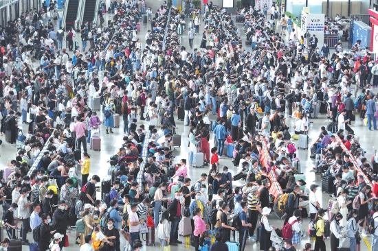 “五一”假日期间,沪汉蓉铁路客流大幅增加,荆州火车站迎来客流高峰。(记者黄志刚摄)