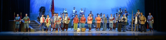 “洪湖水呀,浪呀嘛浪打浪啊,洪湖岸边是呀嘛是家乡啊……”5月7日晚,湖北省歌剧舞剧院携红色经典歌剧《洪湖赤卫队》“回家”,在“洪湖赤卫队”诞生地——洪湖市唱响,并正式启动该剧的全国巡演。接下来,《洪湖赤卫队》还将会走进嘉兴南湖、井冈山、西柏坡、延安等革命圣地进行展演。 歌剧《洪湖赤卫队》62年来,足迹遍布大江南北,连演3000多场,创造了新中国成立后创作剧目上演的最高纪录,堪称中国歌剧史上里程碑式作品。作为湖北省歌剧舞剧院的保留剧目,这部脍炙人口的红色经典不仅从湖北走向全国各地,三年前还赴海外巡演,唱响悉尼歌剧院和墨尔本演奏中心,赢得了近两千名海外观众喝彩。 摄影:汪飞 献礼国庆10周年一炮走红 该剧讲述上世纪30年代国内革命战争时期,贺龙领导的中国工农红军第二军团暂时撤离后,地方革命武装洪湖赤卫队在韩英和刘闯的带领下,与国民党保安团和当地湖霸彭霸天巧妙周旋,沉重打击了来犯敌人的故事。 《洪湖赤卫队》首演于1959年,当年10月作为湖北省向国庆十周年献礼剧目首次进京演出,一炮而红。周恩来、董必武、贺龙、陈毅等都欣赏过该剧的精彩演出,并给予高度评价。 自上世纪60年代以来,歌剧《洪湖赤卫队》被改编成多个地方剧种,拍成电影公开放映后,更是风靡一时。 62年来,《洪湖赤卫队》已演出3000余场,获誉无数。今年,它又光荣入选庆祝建党百年全国“百年百部”优秀舞台艺术作品。该剧排练导演周彦表示,《洪湖赤卫队》的诞生,标志着中国歌剧开启了自己的样式和模式,形成了特色鲜明的美学品格,对新中国歌剧创作产生了深远的影响。 五代“韩英”接力传承 传承与创新是《洪湖赤卫队》经久不衰的两大法宝。 几代演员传承接力。剧中女主角韩英的扮演者,迄今已发展到第五代。“第一代韩英”王玉珍、“第二代韩英”李祝华、“第三代韩英”刘丹丽、“第四代韩英”马娅琴、“第五代韩英”杨娟和陈小艺……一代代扮演者,言传身教,倾囊相授,延续着中国歌剧的艺术血脉。 作为“老演员”,马娅琴对自己的每一场演出都精益求精,“这样才能无愧于舞台,无愧于观众”。“第二代韩英”李柷华和“第三代韩英”刘丹丽都给过马娅琴悉心指导,现在的导演周延甚至有一个习惯,就是每一场演出都做导演笔记,给主演们提供一面“镜子”,以便他们能够清晰地发现自己的问题并及时复盘纠正。 不断创新表现形式。为了紧跟时代发展,顺应观赏需求,歌剧《洪湖赤卫队》分别于1976年、1989年、1998年进行了三次复排。于1999年复排公演的《洪湖赤卫队》,剧情节奏感增强,台词更精简,舞美更精致,配器更丰富,时长缩短为两个小时,大家耳熟能详的《洪湖水浪打浪》更是被改编成了气势磅礴的大合唱,大大增强了吸引力和感染力。 如今,《洪湖赤卫队》更是进行了全方位“升级”。作曲家、指挥家王秀峰对《洪湖赤卫队》再次配器,在保留原本曲调精华的基础上,增强了整体作品的交响性,使之更加符合“大歌剧”的美学标准。在舞美方面,也对原先的经典场景进行了重新布景设计,声、光、电等技术的运用,使舞台呈现更加符合现代审美需求。 “歌声中有一种直抵人心的力量” 20世纪二三十年代,贺龙、周逸群、段德昌等一批卓越的政治家、军事家,以百里洪湖为中心建立了不世功勋湘鄂西革命根据地,谱写了中国革命史的辉煌一页。心潮澎湃的路易·艾黎写下了《同洪水搏斗的人们》等文章,把“艰苦奋斗,百折不挠,勇往直前,战胜每一个困难”的“一种为普通洪湖人民掌握的精神”誉为“洪湖精神”。 20世纪50年代初,湖北省实验歌剧团的成员们赴湖北采风,创作出《洪湖水,浪打浪》,成为歌剧《洪湖赤卫队》的主旋律。 “第三代韩英”刘丹丽曾表示,“唱红歌、演红剧”并不仅仅是一种形式,更是一种民族精神的传递。作为演员,我们希望让年轻一代的观众通过音乐和故事,从革命先辈身上感悟精神力量。 大学生王晨钰看过《洪湖赤卫队》后说:“这是我第一次看歌剧,歌声中有一种直抵人心的力量!”作为一名“00后”大学生,王晨钰对《洪湖赤卫队》的故事并不熟悉,“后排的老奶奶一直饱含深情地跟着哼唱。历史是有温度的,是不能忘却的。作为新时代青年,我们更要学党史,把红色基因一代代传承下去。” 据悉,中宣部、文旅部、中国文联定于今年5月至7月举办庆祝中国共产党成立100周年优秀舞台艺术作品展演。《洪湖赤卫队》成功入选,将赴全国各地进行巡演。 |
