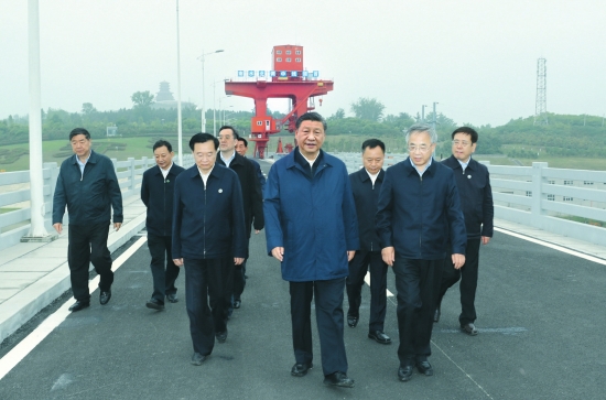 “我对这件事一直十分重视。南水北调工程事关战略全局、事关长远发展、事关人民福祉。之前看到相关报告,我说这件事要专门来研究一次。” 河南南阳,西依秦岭、南临汉江、绾毂中原,南水北调中线一期工程“水龙头”“总开关”所在地。逶迤近三千里的丹江口水库的水,就从这里起步,走中原、穿黄河、依太行、入华北。 正值初夏时节,水波浩荡,习近平总书记来到这里,专题调研南水北调。 13日,在陶岔渠首,察看工程运行情况,乘船考察丹江口水库;再赴移民新村,看一看那些为南水北调搬离故土的乡亲们。 14日,南阳宾馆,推进南水北调后续工程高质量发展座谈会开到中午时分。 水运连着国运。习近平总书记一席话语重心长: “在我们五千多年中华文明史中,一些地方几度繁华、几度衰落。历史上很多兴和衰都是连着发生的。要想国泰民安、岁稔年丰,必须善于治水。” 泱泱大国的治水史,气吞山河。 相隔半年时间,从东线起点到中线渠首 “吃水不忘挖井人” 巨闸揽江卧,船行碧波间。 习近平总书记伫立船头,他的目光望向烟波浩渺的水、望向林木葱郁的山。 半年前的江苏扬州之行历历在目。江都水利枢纽,东线一期工程的起点。一泓碧水从那里出发,沿京杭大运河提水北送。 而今,来到中线一期工程渠首。青山环峙,浪花翻卷,思绪万千。 “这个地方我一直想来。南水北调工程建设,这个地方的运行以及这里的移民工作,我一直关注着,这一次看一看我很高兴。” 端起一杯新打上来的水库水,总书记迎着光看了又看,笑着说:“‘水龙头’水质不错!” 这些水千里奔流,由一个个渡槽护送,长途跋涉1432公里,润泽豫冀津京。 供水线,一条生命线。昔日北京三杯水中就有一杯来自密云水库,现在中线水源占城区供水的70%左右。过去,沿途有的地方“自来水能腌咸菜”,有的“泡茶没有茶味儿”。如今,清澈甘甜的引江水替代了北方某些地区的苦咸水、高氟水。习近平总书记打了个比方:“窝窝头换馒头了。” 考察时,总书记讲述了他所亲历的水的故事。 在河北正定工作期间,“地下水水位年年降,每年降0.5米左右。”“看县志,滹沱河水丰草茂。可到实地一看,哪还有什么河,都是干沙床子。骑自行车到了那儿,扛起车就能过河。” 时过境迁。正定的地下水位止跌回升,滹沱河水波光粼粼。碧水、飞鸟、花海、林荫道,色彩斑斓。 南水北调,造福人民,也依靠人民。下了船,习近平总书记乘车前往丹江口水库的一个移民村,九重镇邹庄村。 途中,省里的负责同志介绍了当地口口相传的一句话,习近平总书记听了不由动容: “老百姓很朴实啊,说‘北京人渴了,咱们得给他们供点水’。多么朴实的语言,但又体现了一种多么伟大的奉献精神。” 8省市150多个县市40多万移民,他们的日子过得好不好?习近平总书记走进移民户邹新曾家。 种田、务工,还有电商直播新业态,这家日子红红火火。总书记接过土坯房老照片端详: “移民之后,乡亲们10年收入提高了3.6倍,这是我们欣慰的地方。” 听了总书记的话,老邹有些激动:“共产党好,都是为着人民。” “我们党的一百年多不容易、多么艰难,但有一条,这个党建起来就是为了老百姓。人民就是江山。共产党打江山、守江山,守的是什么?就是守人民的心啊。人民拥护我们党,我们党就有生命力。” 临别时,习近平总书记看到墙上贴的奖状,驻足细看,叮嘱要把孩子教育搞好,将来做对社会有用的人。 一出院门,村里的乡亲们都赶来了。鼓掌声、欢呼声沸腾了宁静村落。习近平总书记动情地说: “我很牵挂你们。咱们过去那个家啊,离开是不容易的,我听说‘有山有水、有田有林’,有的还有船是吧?为了沿线人民能够喝上好水,大家舍小家为大家,搬出来了。这是一种伟大的奉献精神。沿线人民、全国人民都应该感谢你们,滴水之恩涌泉相报,吃水不忘挖井人呐,你们就是挖井人。” 从大气魄畅想到大工程落地 “功在当代,利在千秋” 追溯南水北调的历史,要从1952年讲起。 那一年深秋,毛泽东同志视察黄河。在研究黄河水涨上去怎么办、没水了怎么办等问题时,他说:“南方水多,北方水少,如有可能,借点水来也是可以的。” 次年2月19日,春寒料峭。毛主席从武汉登船,顺江东去南京。船上,他再次提到这个话题。 14日的座谈会,习近平总书记回忆这段历史,感慨道:“毛主席这个伟大而浪漫的畅想,是有科学根据的。建设新中国的奠基工程中,水利占重要位置,治国先治水。” 坝怎么建、闸如何修、渠往哪开、水怎么流?自上世纪50年代起,中国行动起来了。一代代研究论证、推敲方案,一次次跋山涉水、实地勘探。 2002年,《南水北调工程总体规划》出炉,“四横三纵、南北调配、东西互济”的水资源配置格局落地。 “这一格局是中华民族的世纪创举。”习近平总书记分析道: “我们国家的水系分布是东西向的。‘四横’,长江、淮河、黄河、海河4大江河水系,基本是天然形成的。‘三纵’,东、中、西3条调水线路,是工程性的。” 2002年东线、中线一期工程开工建设,分别于2013年、2014年主体工程建成通水。 碧水北送,扬波千重;长河泱泱,利泽万方。中国的发展格局由此掀开了新篇章。 2014年3月,习近平总书记主持召开中央财经领导小组第五次会议,研究水安全问题,提出“节水优先、空间均衡、系统治理、两手发力”的16字治水新思路