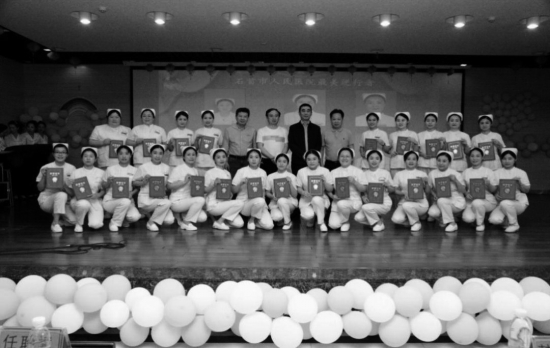 党委书记、院长任聆斌致辞;院纪委书记谢方勇宣读了表彰通报。医院领导先后为张红等6名最美耕耘者、马春等26名最美逆行者、张硕梅等10名优秀带教老师、郑萍等22名优秀护士、谭慧敏等19名夜班之星颁奖并合影。