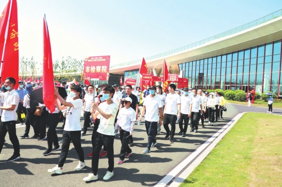 为迎接中国共产党百年华诞,助力荆州创建全国文明城市,近日,市人民检察院组织30余名干警到纪南生态文化旅游区荆州园博园,参加以“学党史、感党恩、跟党走”为主题的荆州市万名职工健步走活动。