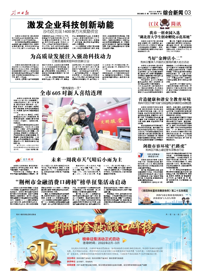 本报讯(记者张致远通讯员吴悠)记者昨日从市气象台获悉,未来一周天气整体晴好,气温不断回升。 气象专家介绍,2月最后一周,我市天气整体呈现前晴后小雨趋势。预计23日至27日,我市大部地区多云天气为主,气温不断回升,期间,26日高温将达到17℃。27日傍晚到夜间开始,受可能到来的小雨影响,气温将略有下降。 具体天气为:2月23日多云,气温1-10℃。2月24日晴,气温1-12℃。2月25日晴,气温1-12℃。2月26日晴,气温2-17℃。2月27日多云转小雨,气温5-16℃。2月28日小雨,气温8-15℃。3月1日小雨,气温10-16℃。 气象部门提醒,当下正值冬春季节交替之时,温度变化快,广大市民要留意天气变化,及时添减衣物,以免对身体健康造成不良影响。 |
