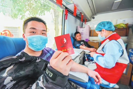 3月5日,沙市区王板桥社区内,居民正在无偿献血。