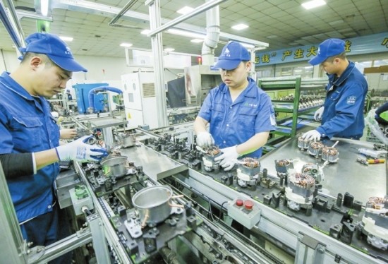 ?3月21日,华意压缩机(荆州)有限公司员工在生产线上忙碌。今年以来,该公司积极开拓市场,一季度订单已达3.5亿元。作为国家高新技术企业,该公司年出口额占销售额的30%。 (潘路张梦瑶佃琳摄)