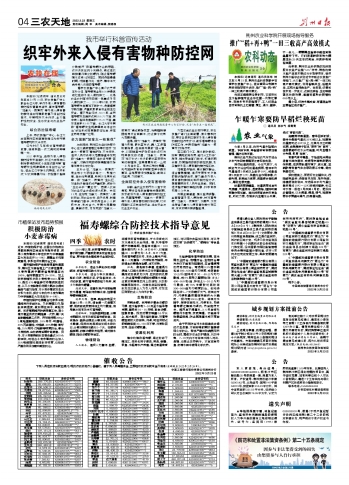 □市农业技术推广中心 四季农时 2014年以来,我市福寿螺发生、危害不断加剧,严重威胁粮食安全和生态安全,要采取综合措施进行全面防控。 农业防治 水旱轮作。结合水旱轮作和深翻晒田,使福寿螺因缺水死亡。 冬季灭螺。结合冬季水利建设,整修沟渠,清理淤泥,铲除稻田边、水沟边杂草,破坏福寿螺的越冬场所,减少冬季的残螺量。 漫灌灭卵。在春秋季产卵高峰期放水漫灌,可降低卵的孵化率,控制福寿螺种群密度。 追肥灭螺。在早、晚稻移栽至大田后12天-15天,结合第一次追肥灭螺,用碳铵或尿素拌细土均匀撒施,利用氨水可有效杀灭福寿螺。 控灌晒田。水稻秧苗期控灌、分蘖末期晒田,可有效减轻福寿螺危害。具体操作:插秧活棵至分蘖末期,采取浅水勤灌,保持田间湿润但无明水的状态;分蘖末期排水晒天5-7天。在螺卵盛孵期,初孵幼螺的抗性弱,适时排水晒田,降低幼螺的存活率。 物理防治 人工捕杀。组织人力摘卵、捡螺, 将捕获的福寿螺敲碎、开水烫煮或石灰水浸泡灭杀后深埋。春、秋季福寿螺产卵高峰期,在稻田中插30~100厘米高竹片(木条、油菜秸秆),以每亩插30~80根竹片(木条、秸秆)为宜,引诱福寿螺在竹片、木条上集中产卵,每2-3天摘除一次卵块进行销毁,平时结合农事操作捡螺,消灭卵块。 拦截。避免田水串灌,在灌溉水渠出入口和水田进水口处安置拦截金属网或安装尼龙纱网,拦网的网孔要小,防止福寿螺幼螺和成螺随水传播,注意定期清理拦网上的渣物,以防影响灌溉和排水。加强检疫监控管理,未发生区禁止人为引入饲养,对发生区则要防止人为向外扩散。 生物防治 养鸭食螺。利用鸭子喜食幼螺的习惯,在水稻移栽7-10天至水稻孕穗末期,亩投放10~15只鸭,取食幼螺,控制危害。投放时要求鸭重0.5斤以上,越大越好。在水稻收割后,对福寿螺密度较大的田块、沟渠,可组织附近的鸭群每亩30-150只不等,反复轮回放养,压低幼螺数量。 资源化利用 集中收集的福寿螺,通过粉碎干燥加工,饲料化用于青鱼、黑鱼、螃蟹、甲鱼、水蛭等水产养殖;通过高温蒸煮加工,可以用作食品加工原料,可以考虑发展“袋装螺片”、“螺蛳粉”等食品加工。 化学防治 水稻种植季福寿螺高发期,在采用农业防治、物理防治、生物防治等方法仍不能有效控制时,应合理使用农药进行防治。可选用0.3%苦参碱乳油300-500倍均匀喷雾,或茶枯粉10公斤/亩拌河沙30-40公斤均匀撒施,或6%四聚乙醛颗粒剂(密达)400-550克/亩,拌细土5-10公斤均匀撒施,或70%杀螺胺可湿粉剂300-500倍均匀喷雾防治。也可选择连续5-7天的晴好天气,在田内开沟,沟渠数量根据田块面积大小确定,一般沟宽50cm左右。将田内水排干,保持田面无水、沟渠有水,引诱福寿螺汇集到沟渠内,然后施药灭杀。施药后不得灌水,3-5天后将残螺和污水取走,挖坑填埋。不能将污物滞留田间,防止其随灌水或下雨后流失。 由于药剂防治对水体和鱼类会造成次生危害,不到非常时期不推荐使用化学防治。特别严重田块确需用药防治时,需做好安全防护措施,以防中毒,7-10天内不可将田水排入河流、鱼塘,也禁止放养鸭子。不宜在套养鱼、虾等水田中使用化学农药。 |