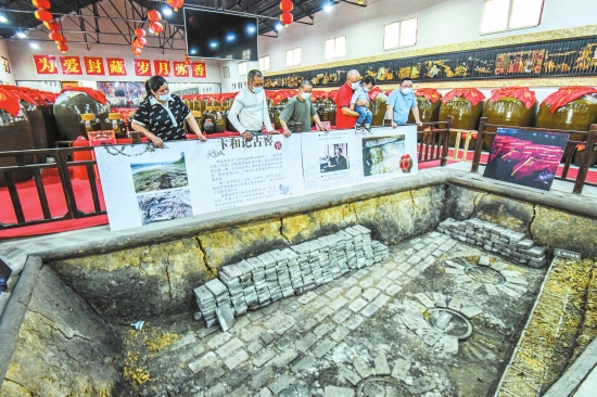 日前,游客在市非物质文化遗产实践基地——荆州区弥市镇虎桥酒庄的卞和记古窖内参观明代酒窖。