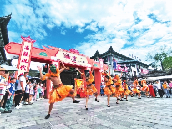 世界端午看中国,中国端午看宜昌。自2009年屈原故里端午习俗被联合国教科文组织列入人类非物质文化遗产代表作名录后,端午节已成为屈原故里千年不断的文化盛会和具有世界影响力的文化符号,也成为宜昌的一张亮丽名片。 今年端午,宜昌坚持“以一流标准办好一流盛会”,打造一场具有“宜昌特色、国家水平、世界影响”的经典文化盛会,建设屈原文化的“一标三地”。 开幕晚会,庄严肃穆祭屈原 端午文化节开幕式暨屈原故里端午祭是每年宜昌端午系列活动的重头戏。 “后皇嘉树、橘徕服兮,受命不迁、生南国兮……”6月2日晚,由文化和旅游部、湖北省人民政府主办的2022屈原故里端午文化节开幕式暨屈原故里端午祭在秭归县屈原祠广场举行。 当晚7时35分,在《天下橘颂》朗朗的吟诵声中,屈原故里端午祭拉开序幕。初献礼、亚献礼和终献礼三个篇章组成的祭拜大典,庄严肃穆。 仪式结束后,大型原创音舞诗画《楚辞里的中国》震撼上演。围绕屈原精神和《楚辞》章句,运用全息投影、虚拟XR等科技手段,绘织成一幕幕唯美动人的诗意画卷。 夜空中,1000架无人机在高峡平湖之上,幻化出峨冠博带的屈原形象、飞舞的楚国凤凰……3个篇章20余幅图像依次立体呈现,美轮美奂,耀眼夺目。 150多家电视、网络媒体同步直播开幕式盛况,全球数千万观众在线观看了这场视听盛宴。 龙舟竞渡,奋楫击水勇争先 2300年来,宜昌儿女赛龙舟、撒粽子、唱楚辞,用独特的形式,传承着屈原文化,守护着精神家园。 因为龙舟,宜昌秭归聚焦了全球的目光。 6月3日,端午之日。2022年“屈原故里”中国龙舟争霸赛(宜昌)在徐家冲港湾举行,来自全国各地的16支龙舟代表队,在峡江上奋楫击水,飞驰竞渡,共忆屈原。 为纪念屈原,宜昌人民将游江招魂的习俗延续至今,呼唤屈原魂魄归来。现场,一幕幕以致敬屈原为主题的沉浸式表演,引领观众走近屈原波澜壮阔的一生,感受屈原精神文化的内核。在国家级非遗代表项目《屈原传说》传承人郑承志的主持下,千古相传、独一无二的屈乡龙舟祭祀大典让观众大开眼界。 经过激烈角逐,广东顺德乐从罗浮宫龙舟队同时获得22人大龙舟200米、500米直道赛、3000米绕标赛三项冠军。 诗在原乡,情真意切传千古 端午期间,以诗之名纪念诗祖屈原,是宜昌的传统。 6月1日晚,长江三峡1号游轮上,灯光璀璨,第二届“屈原诗歌奖”颁奖盛典在这里举行。著名诗人吉狄马加以诗歌之名,向宜昌这座诗歌之城表达诚挚感谢和崇高敬意。 与此同时,“诗在原乡”端午诗会在屈乡大地浓情上演。 既有弘扬屈原清廉精神的“清廉濯吾缨·浩然新时代”清廉诗会、展示秭归县教育系统传承屈原文化成果的“四季弦歌”教育诗会,也有乐平里屈原庙前黄桷树下,如期而至的一年一度的“诗在民间”三闾“骚坛诗会”。传承40年的“骚坛诗会”上,粗衣布袜的乡亲们吟唱着自创诗作,表达着对先贤的怀念与景仰。 迎着飘香的端午,广大诗词爱好者和不朽的诗人屈原一路相伴走来,屈原那爱国情怀、浪漫诗篇,已经化为民族的文化与精魂。 以节为媒,招商引资新突破 屈乡端午,又一次因屈原而不凡。 端午活动季,屈原故里电竞嘉年华、屈原故里端午美食文化旅游节、“穿越时空的家书——致屈原”全球征文、“宜昌人社系统屈原文化沙龙暨屈原文化知识竞赛”等一场场与屈原相关的文旅盛宴精彩上演,迎来高朋满座。 屈原文化带给宜昌的,不仅是文化繁荣,更是经济社会发展的纽带与桥梁。屈原文化为宜昌高质量发展注入新的动力和活力。 以节为媒,实现招商引资新突破。6月2日,在宜昌城区举行的2022屈原故里端午文化节投资洽谈会上,新签约46个项目,总投资1312亿元的。同日,在秭归县举行的“招商引资·招才引智”主题活动中,集中签约项目25个,总投资约278.43亿元。 围绕端午文化节,秭归还推出系列文创旅游产品、举办首届兰花文化博览会,促进与屈原相关的文旅产业快速发展。端午节期间,相关产品交易额达500多万元。 (宜荆荆恩主流媒体联盟·三峡日报全媒记者胡兴军) ②端午节期间,民间艺人在湖北省宜昌市秭归县屈原故里非遗小巷绣制香包,通过各种民俗活动感受传统文化魅力,庆祝端午佳节。(郑家裕摄) ③荆州方特《屈原》演出备受欢迎。 荆州 “你知道,屈原并没有离去,他将以另一种形式长存于世……”舞台上,一只浴火重生的凤凰扶摇而上,傲然俯瞰荆楚大地,气势恢宏的楚国乐舞华丽上演。台下,是久久不愿离席的观众和一阵又一阵雷鸣般的掌声。 今年端午节期间,荆州方特《屈原》演出,场场爆满。大家纷纷走进这个融高科技舞台与真人表演于一体的项目中,穿越千年,在科技环绕的梦幻旅程中,读懂屈原,领会楚文化的魅力。 “今天是端午节,特地带孩子来看《屈原》演出,了解端午节的文化内涵,感受屈原的爱国主义精神。”游客詹女士说,整场演出利用水墨画风格和动态特效,展现了屈原的一生,对孩子来说更像是上了一堂生动丰富的历史课。 “感觉过了一个非常有意义的端午节。”一位年轻游客在体验《屈原》项目后深受震撼,全息投影、高科技舞台和真人表演紧密结合,让他身临其境,参与、体验、了解屈原《离骚》《天问》等作品以及屈原生平经历的传奇故事。 端午节期间,荆州方特《屈原》演出每天上演四场,在做好常态化疫情防控前提下,