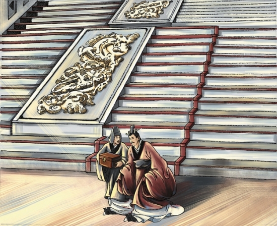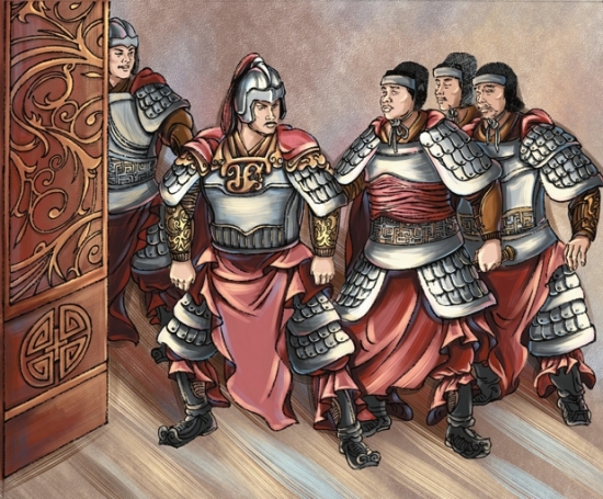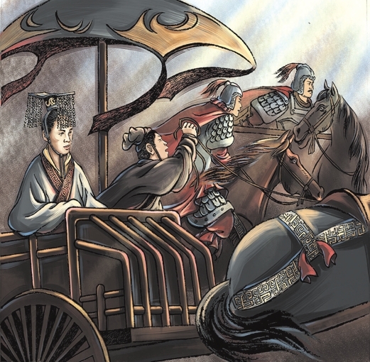 ②楚平王召集群臣商议对策。大臣伍奢的二儿子伍员(子胥)自荐:“臣下就是一个宝贝,请陛下把我献出去吧!”楚平王大怒:“你一个黄毛孩子,竟然口出狂言!来人,把他给我赶下去!”可是,几个近卫怎么也拉不动小伍员。 |