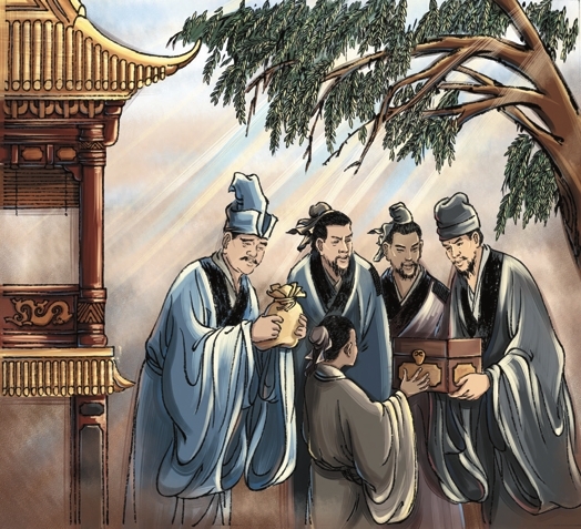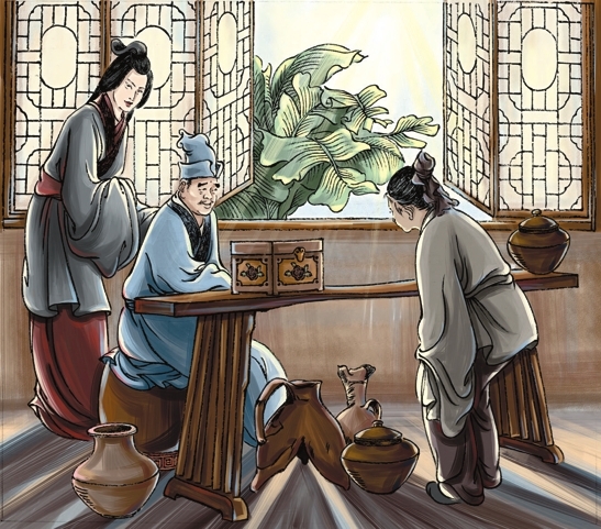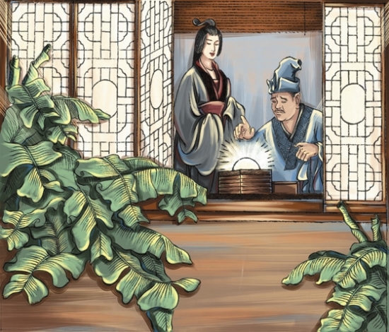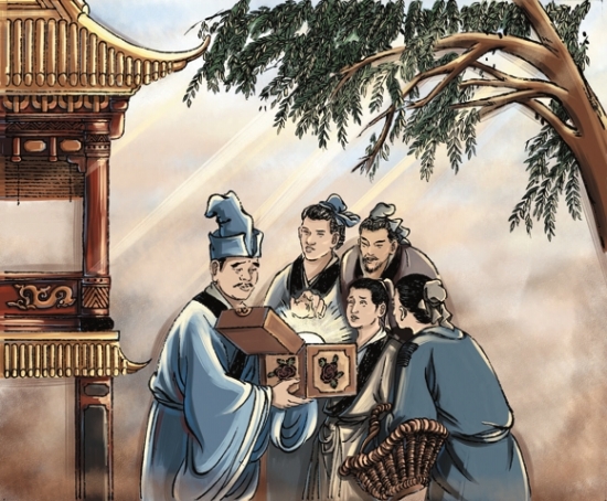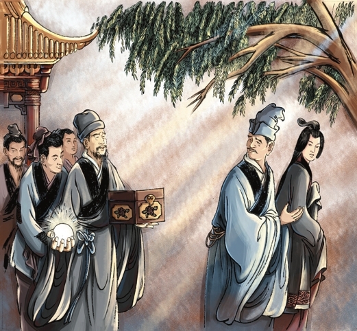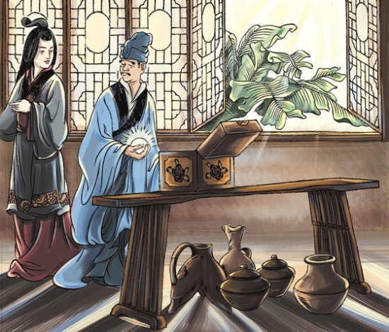 ⑥郑国人走到楚国商人面前,打开盒子把里面的珍珠取出来交给楚人说:“比起这颗珍珠,我更喜欢这个盒子。”说完,郑国人便离开了。楚国商人拿着珍珠,哭笑不得。 |