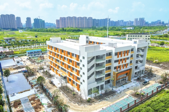 目前,施工方正抓紧进行校内道路、绿化、操场等煞尾工程,预计本月内全部完工,确保秋季开学投入使用。