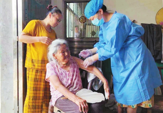 为落实常态化疫情防控工作,提高60岁以上人群新冠疫苗接种率,该镇结合“下基层、察民情、解民忧、暖民心”实践活动,由镇村干部、网格员、卫生院医务人员组成流动接种队,分别前往各村60岁以上身患疾病、行动不便老年人家中,提供一站式上门接种服务。