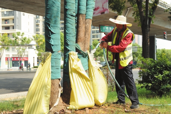 久旱未逢雨,为保证城区树木存活,9月以来,市城市绿化管理处采取包括“蛇皮袋”缓释滴灌方法在内的多种举措抗旱保苗。截至日前,已为城区树木“挂袋”近3万个。