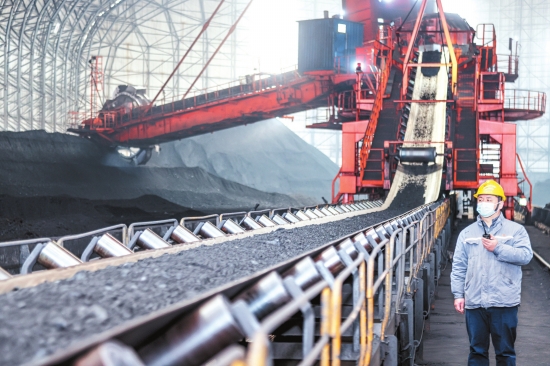 春节期间,国能长源荆州热电有限公司干煤棚内,工作人员指挥操作斗轮机将冬储煤运往煤仓,做好燃料保供工作,保障发电机组多发多供。