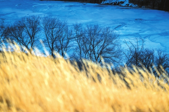 夕阳下的滦河源国家森林公园(1月29日摄)。目前,位于锡林郭勒盟多伦县三道沟林场境内的内蒙古滦河源国家森林公园被积雪覆盖,阳光下,植被多彩绚丽,呈现出独特的冬日景色。 (新华社发)