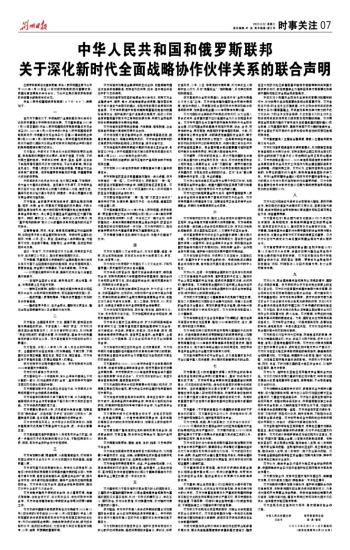 中华人民共和国和俄罗斯联邦 关于深化新时代全面战略协作伙伴关系的联合声明