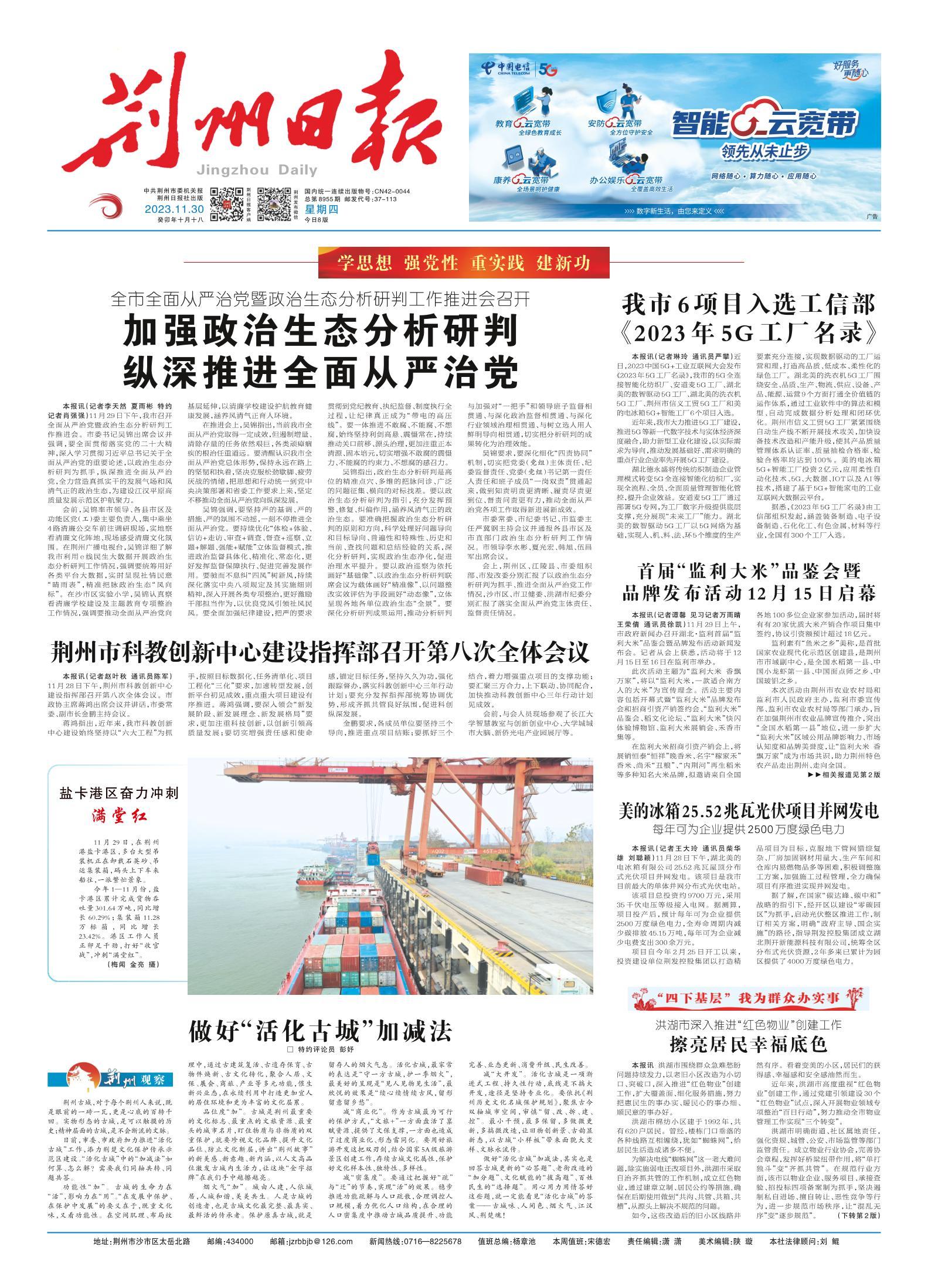 《荆州日报》(电子版)的一切内容(包括但不限于文字、图片、PDF、图表、标志、标识、商标、版面设计、专栏目录与名称、内容分类标准以及为读者提供的任何信息)仅供荆州日报读者阅读、学习研究使用,未经荆州日报及/或相关权利人书面授权,任何单位及个人不得将《荆州日报》(电子版)所登载、发布的内容用于商业性目的,包括但不限于转载、复制、发行、制作光盘、数据库、触摸展示等行为方式,或将之在非本站所属的服务器上作镜像。否则,荆州日报将采取包括但不限于网上公示、向有关部门举报、诉讼等一切合法手段,追究侵权者的法律责任。
