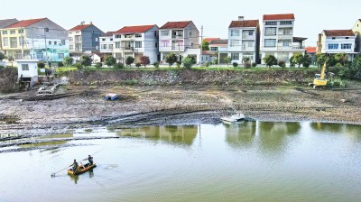 该湖泊系秦市乡三大湖泊之一,涉及秦市乡永丰村、拖船埠村、永和村、陆阳台社区4个行政村1420户农户。湖泊整治项目涵盖水系连通工程、生态清淤工程、生态岸坡整治、生态修复和生态服务配套等内容。整治完成后,将实现“河畅、水清、岸绿、景美”的总目标,恢复千年古河道的历史风貌。(梅闻 张梦瑶 齐勇 摄)