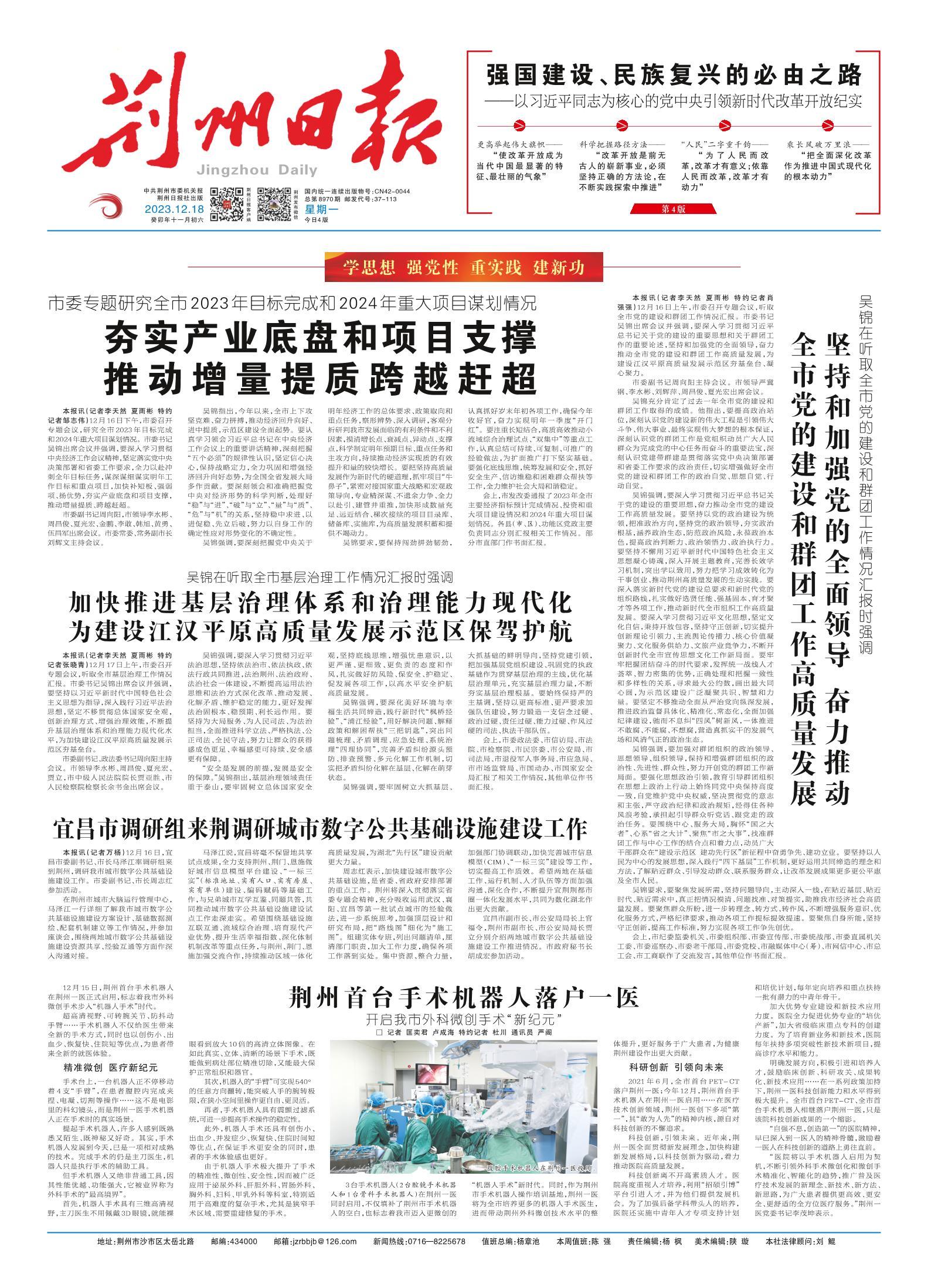 2021年6月,全市首台PET-CT落户荆州一医;今年12月,荆州首台手术机器人在荆州一医启用……在医疗技术创新领域,荆州一医创下多项“第一”,其“敢为人先”的精神内核,源自对科技创新的不懈追求。
