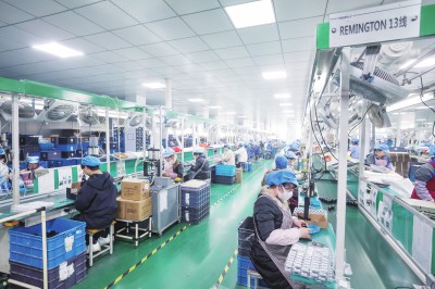 12月27日,在位于慈溪市周巷镇的月立集团有限公司装配车间内,工人们生产电吹风。该公司是一家专业生产电吹风、美发器、剃须刀、电熨斗等个人护理电器产品的制造商,是全球最大的电吹风制造工厂之一,电吹风年产量超1100万台,在行业内名列前茅。今年前三季度,该集团总营收增长10%。