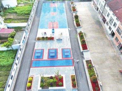 近年来,秦市乡永丰村先后修建了篮球场、儿童游乐场所、休闲长廊等场所,极大改善了村民生产生活条件。2023年,永丰村跻身“湖北省和美乡村建设试点村”行列。(吴容华 摄)