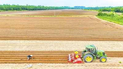 近日,荆州区李埠镇李埠村萝卜种植基地,大型播种机器在田间来回穿梭,笔直的田垄随之形成,滴灌管铺设、萝卜播种等作业一次性完成。