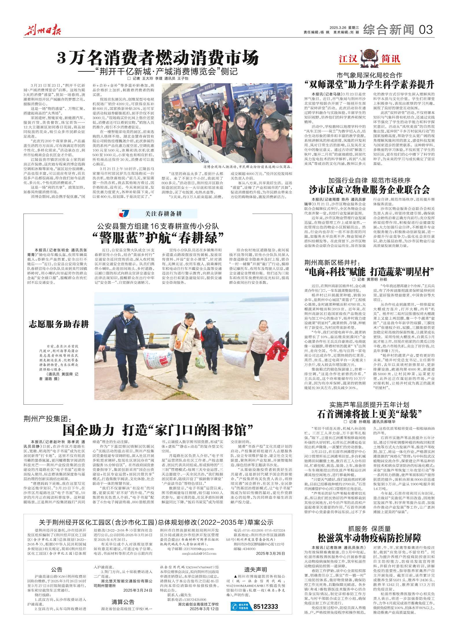 《荆州日报》(电子版)的一切内容(包括但不限于文字、图片、PDF、图表、标志、标识、商标、版面设计、专栏目录与名称、内容分类标准以及为读者提供的任何信息)仅供荆州日报读者阅读、学习研究使用,未经荆州日报及/或相关权利人书面授权,任何单位及个人不得将《荆州日报》(电子版)所登载、发布的内容用于商业性目的,包括但不限于转载、复制、发行、制作光盘、数据库、触摸展示等行为方式,或将之在非本站所属的服务器上作镜像。否则,荆州日报将采取包括但不限于网上公示、向有关部门举报、诉讼等一切合法手段,追究侵权者的法律责任。