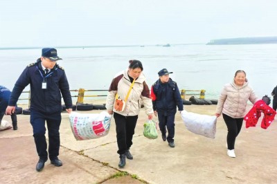 日前,在长江石首段汽渡口,荆州海事局蒲公英志愿者积极帮助农民朋友搬运农具、化肥等春耕备耕物资,为来往群众提供贴心服务。