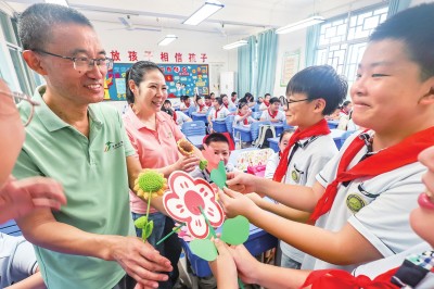 该校学生发挥创意,亲手制作各具特色的贺卡和花朵,将满满心意融入其中。现场温馨动人,学生们将礼物送到老师手中,校园里回荡着声声真挚祝福。