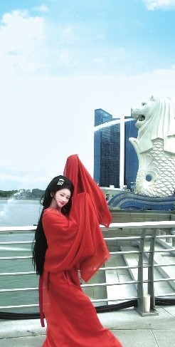 网红博主“唐喵喵issa”身着一袭红色荆州战国袍,走进澳大利亚新南威尔士州美术馆、海港大桥、悉尼歌剧院。在大洋彼岸的美国,网红博主“嘉嘉”一身素雅的淡色荆州战国袍,走过纽约时代广场、公共图书馆、中央车站等地。而博主“小酱”则将荆州战国袍带到了新加坡滨海湾金沙、滨海湾花园、鱼尾狮公园。她们温婉浪漫的身姿,吸引了不少当地民众关注,她们通过精美服饰向海外游客展示楚文化。