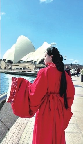 本报讯(记者宗禾)让世界看见楚文化! 近日,多名网络博主分别在澳大利亚、美国、新加坡等国家,展示中国荆州战国袍。