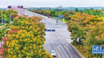 9月12日,纪南文旅区悄然换上新装,武王大道等主干道两侧的栾树、银杏树等植株,用“金叶”“彩果”点染出一场秋日视觉盛宴。                                      (记者 张梦瑶 摄)