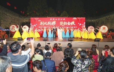 近日,“荆风荆彩 楚韵金秋”——庆祝中华人民共和国成立76周年暨“荆楚四季村晚”文艺惠民演出,在荆州古城宾阳楼瓮城内举行。本次活动由荆州区文化和旅游局主办、荆州区文化馆承办,演出内容融入楚文化元素,通过楚乐演奏、楚舞表演、歌曲、朗诵、戏曲等形式,让观众领略到传统文化的魅力。