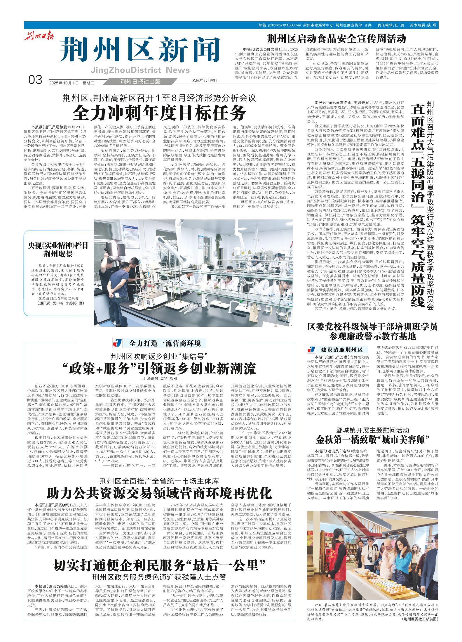 《荆州日报》(电子版)的一切内容(包括但不限于文字、图片、PDF、图表、标志、标识、商标、版面设计、专栏目录与名称、内容分类标准以及为读者提供的任何信息)仅供荆州日报读者阅读、学习研究使用,未经荆州日报及/或相关权利人书面授权,任何单位及个人不得将《荆州日报》(电子版)所登载、发布的内容用于商业性目的,包括但不限于转载、复制、发行、制作光盘、数据库、触摸展示等行为方式,或将之在非本站所属的服务器上作镜像。否则,荆州日报将采取包括但不限于网上公示、向有关部门举报、诉讼等一切合法手段,追究侵权者的法律责任。