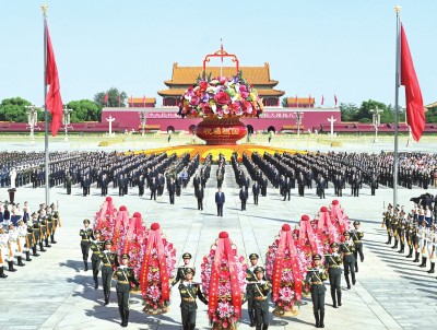 临近10时,习近平、李强、赵乐际、王沪宁、蔡奇、丁薛祥、李希、韩正等党和国家领导人来到天安门广场,出席向人民英雄敬献花篮仪式。(下转第4版)