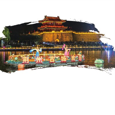 演艺分为五大篇章。《楚乐迎宾》篇章以迎宾古礼,邀请游客走进荆州千年梦境;《梦回荆州》篇章通过“楚王”“樊姬”“优孟”与观众的互动,让历史“活”起来;在《开舩仪式》篇章中,“屈原”邀请游客一同登船游护城河;在行船过程中,上演《屈子荆歌》篇章,“屈原”朗诵《橘颂》《天问》等篇目,带游客领略楚辞里的浪漫和楚人敢为人先的精神底色;最后,在《楚舟归航》篇章中,迎来带有“万寿宝塔”“宾阳楼”“大赛巷”等荆州元素的无人机表演。