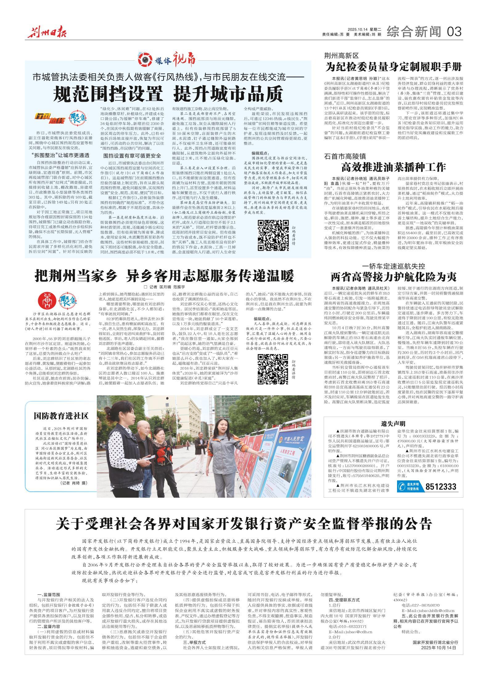 《荆州日报》(电子版)的一切内容(包括但不限于文字、图片、PDF、图表、标志、标识、商标、版面设计、专栏目录与名称、内容分类标准以及为读者提供的任何信息)仅供荆州日报读者阅读、学习研究使用,未经荆州日报及/或相关权利人书面授权,任何单位及个人不得将《荆州日报》(电子版)所登载、发布的内容用于商业性目的,包括但不限于转载、复制、发行、制作光盘、数据库、触摸展示等行为方式,或将之在非本站所属的服务器上作镜像。否则,荆州日报将采取包括但不限于网上公示、向有关部门举报、诉讼等一切合法手段,追究侵权者的法律责任。