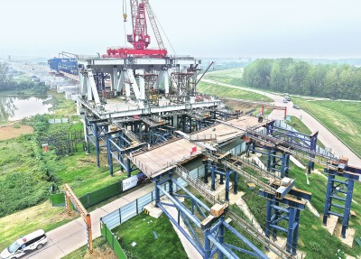 据悉,项目已顺利完成66-67号跨钢筋骨架预埋件安装任务,第二节段钢桁梁完成85%工程量,为铺设跨李埠大堤第三、四片移动钢桁梁奠定坚实基础。(记者 梅闻 通讯员 金波 摄)