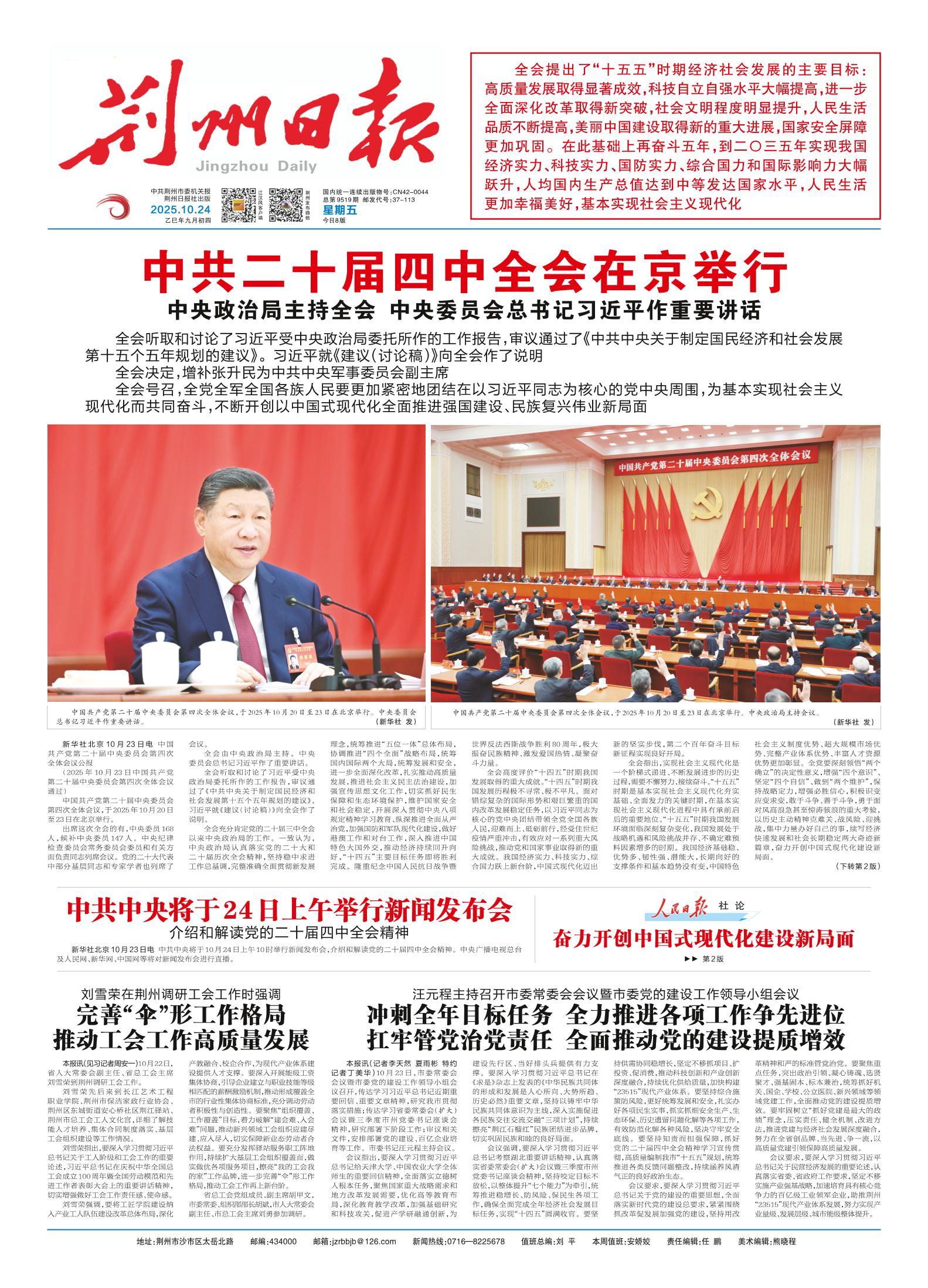 中国共产党第二十届中央委员会第四次全体会议,于2025年10月20日至23日在北京举行。
