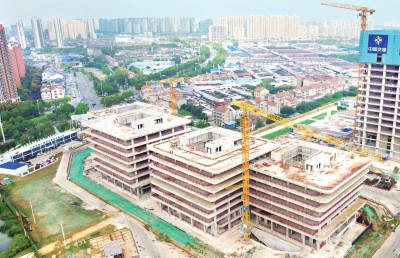 近日,由中交一航局承建的荆州城市新客厅产业协同创新创业集聚区项目(一期)创客中心施工现场,工人正抓紧进行屋面施工,整栋建筑初具规模。