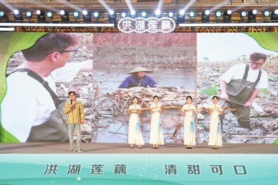 这是一场热情诚挚、合作共赢的品牌发展大会——洪湖藕汤、香煎藕夹、御膳藕丸、桂花蜜藕、清炒藕带、炕蒸藕饼、冰心玉莲、芝麻藕条、荷塘三宝……中央广播电视总台主持人肖贵宁娓娓道来,向大家深情介绍洪湖特色菜。