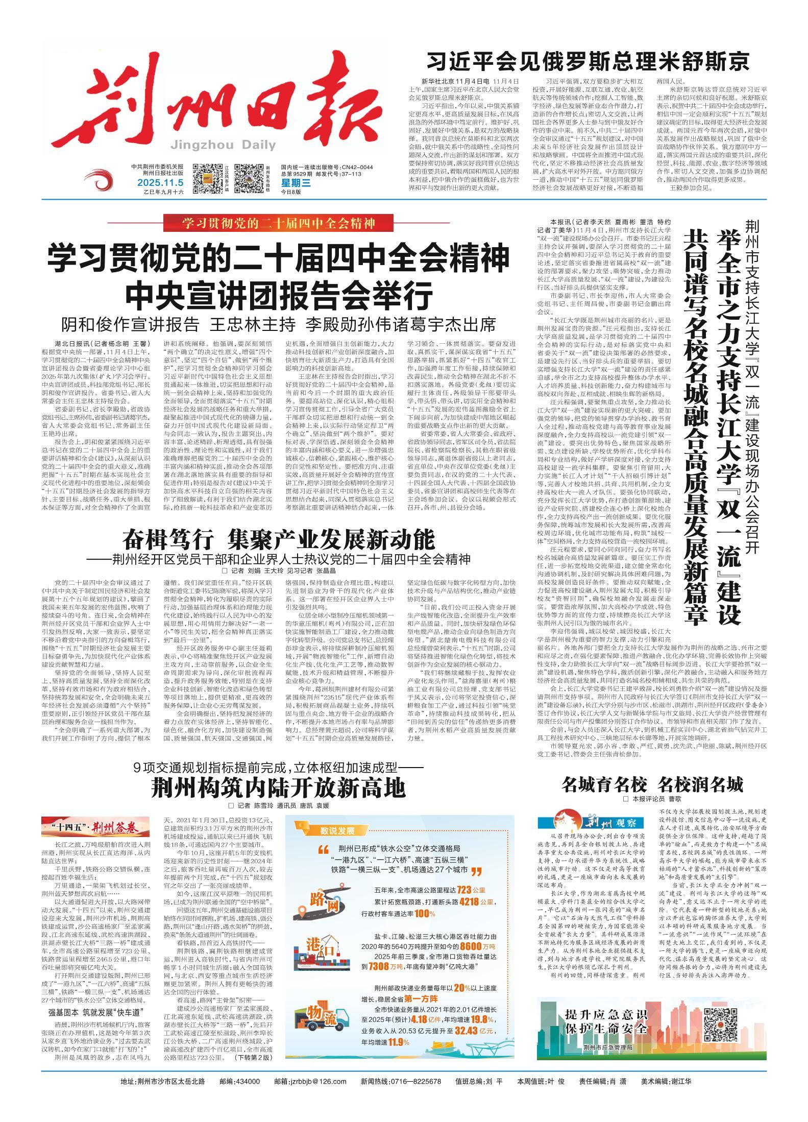 本报讯(记者李天然 夏雨彬 董浩 特约记者丁美华)11月4日,荆州市支持长江大学“双一流”建设现场办公会召开。市委书记汪元程主持会议并强调,要深入学习贯彻党的二十届四中全会精神和习近平总书记关于教育的重要论述,坚定落实省委推进省属高校“双一流”建设的部署要求,聚力攻坚、乘势突破,全力推动长江大学高质量发展、“双一流”建设,为建设先行区、当好排头兵提供坚实支撑。