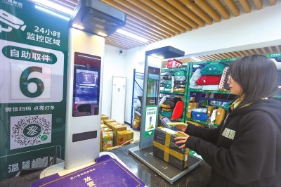 11月4日,长江大学东校区24小时邮政智慧驿站内,学生们自助扫码取件,顺畅高效。(记者 张梦瑶 摄)
