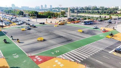 新增设的三色导流区,清晰划分了行人、非机动车和机动车的通行空间,不仅优化了路权分配,也有效提升了路口的通行效率。