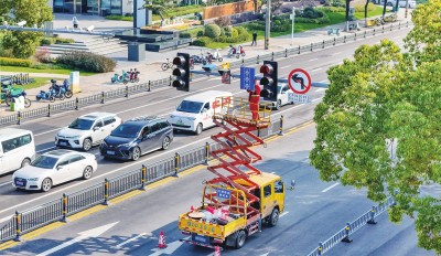 目前,包括江津路—东环路交叉口、北京路—红星路交叉口等在内的中心城区5个主要拥堵路口,也同步开展优化改造。(记者 张梦瑶 摄)