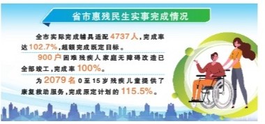 今年,省、市两级政府分别将为4611名持证残疾人提供基本型辅助器具适配服务、为900户困难残疾人家庭实施无障碍改造、免费为1800名0至15岁残疾儿童提供康复救助等三个事项纳入了民生实事的重要内容。