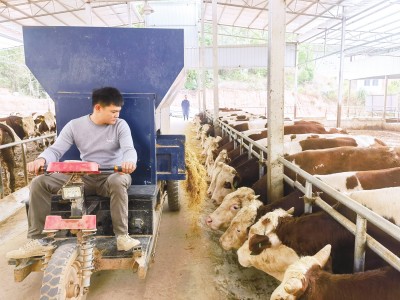 “哞哞……”叫声起处,一排排整齐的牛舍映入眼帘,体格健壮的牛儿正悠闲啃食草料。不远处,粪便生态处理区有序运转。“牛粪尿先干湿分离,渣子发酵晒干,卖给种植户当肥料;液体经发酵池曝氧净化,流入池塘养鱼,池塘水再浇灌周边牧草,真正实现‘零排放’。”工作人员告诉记者。