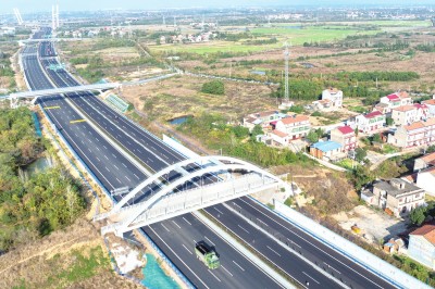 11月20日,由中铁十一局集团负责施工的京港澳高速公路改扩建孝感东互通枢纽最后一段匝道完成施工,正式建成通车,标志着京港澳高速湖北北段改扩建工程建设进入冲刺阶段。 (新华社 发)