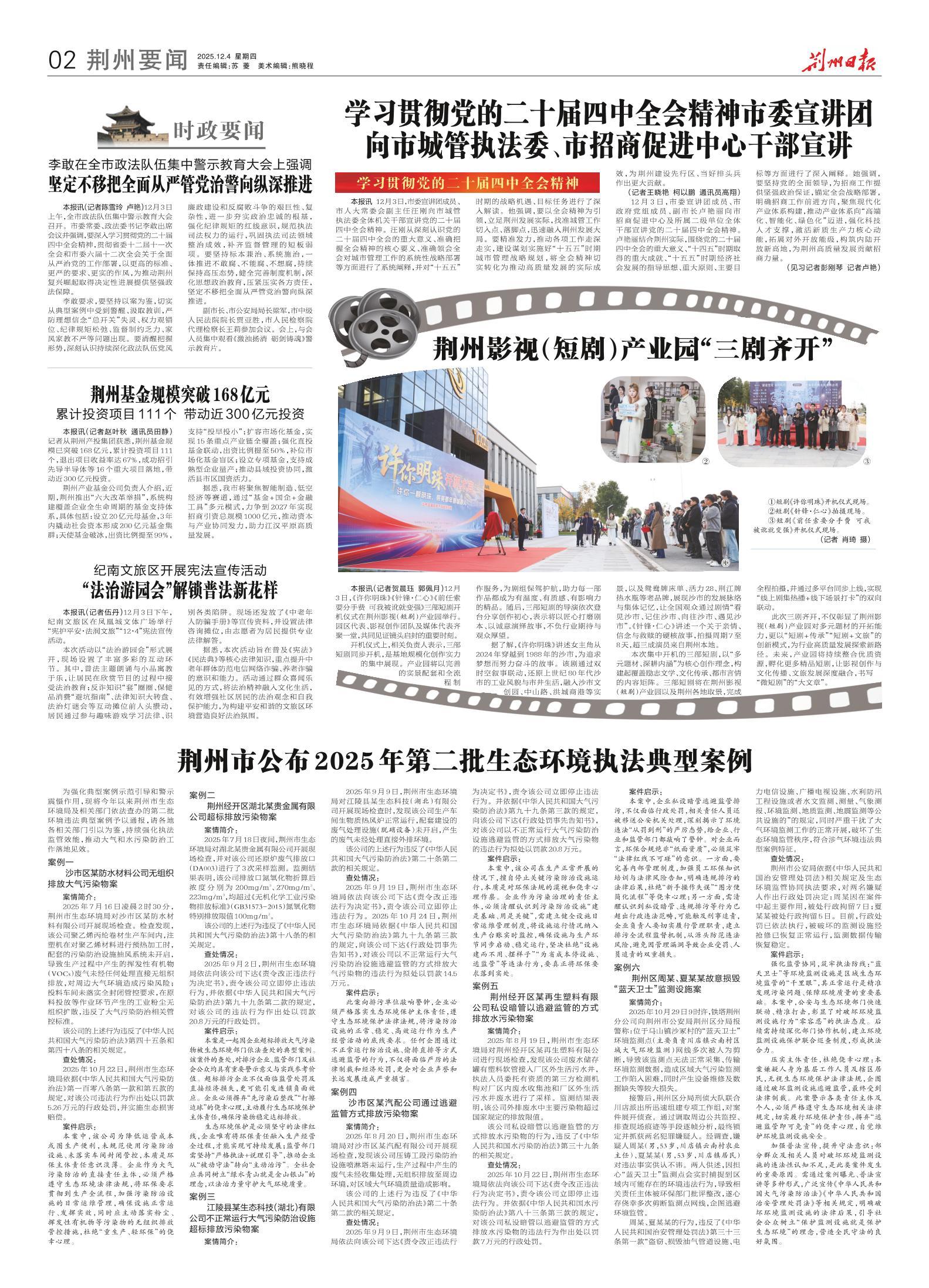 为强化典型案例示范引导和警示震慑作用,现将今年以来荆州市生态环境局及相关部门依法查办的第二批环境违法典型案例予以通报,请各地各相关部门引以为鉴,持续强化执法监管效能,推动大气和水污染防治工作落地见效。
