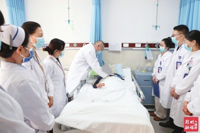活动伊始,荆州市中心医院党委书记杨学武、党委副书记邢程一行深入医院门诊、病区进行实地走访和交流。他们先后调研了急诊科、介入室、放射科、名老中医工作室以及外科、骨科等重点专科。在康复科病区,市中心医院康复医学科主任陈克军带领团队,深入临床一线开展了教学查房,结合具体病例进行现场指导与交流,将优质技术和管理经验直接带到基层。
