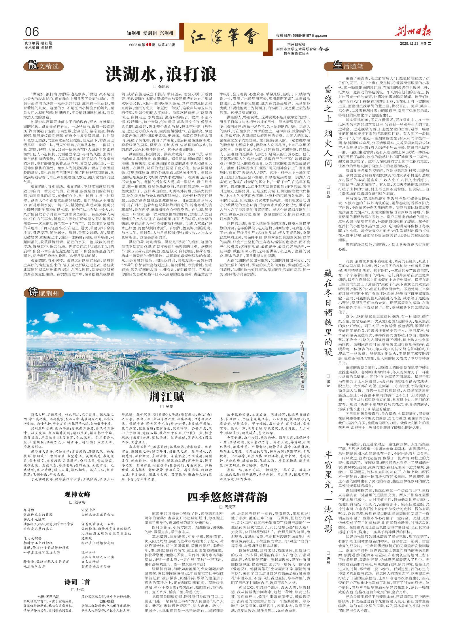 犹记2024年的那个腊月,漫天大雪,冰雪封途,我从县城徒步回老家,途经一荷塘,绿荷已枯萎,顶在荷秆上,像顶礼帽戴在荷梗尖,颇似迈克尔·杰克逊的太空舞步里的一个经典剪影。寒冬腊月,冰天雪地,藕憩泥中,梦里水乡,盼春回大地,待夏日炎炎,慨生命轮回,又荷香满塘。